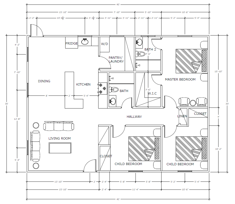 3 bed 2 bath - 1,200 sq ft of living spaceThe Adaptive 1200