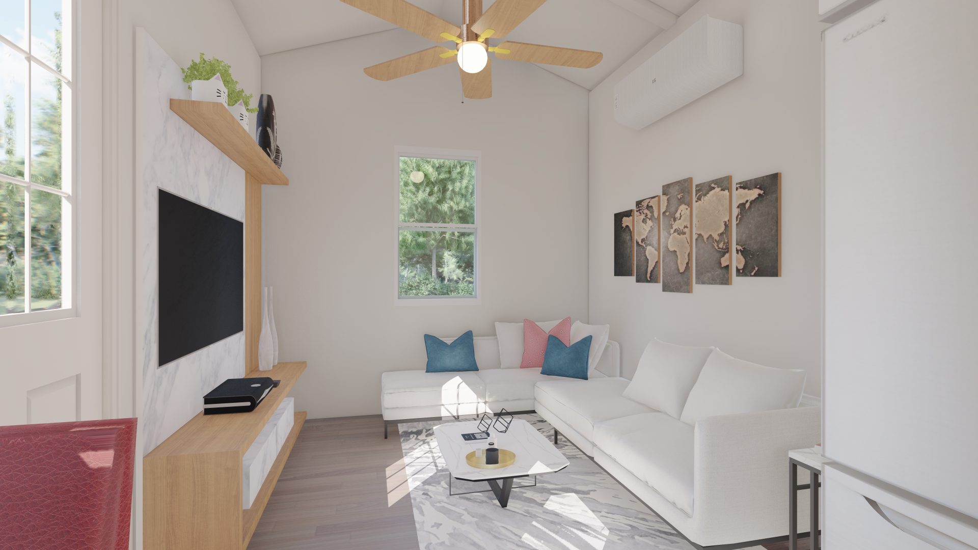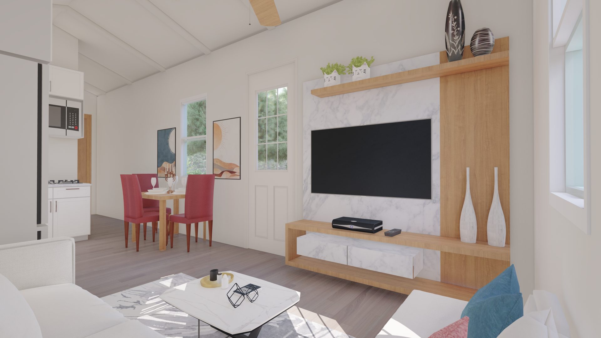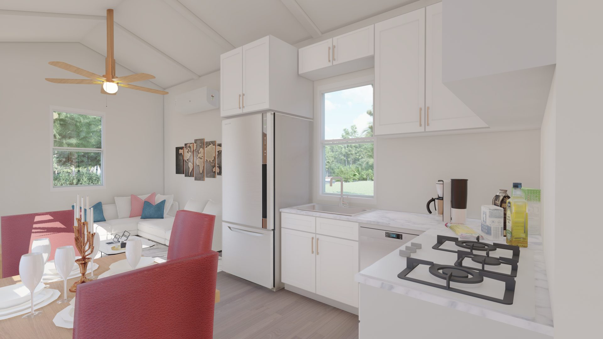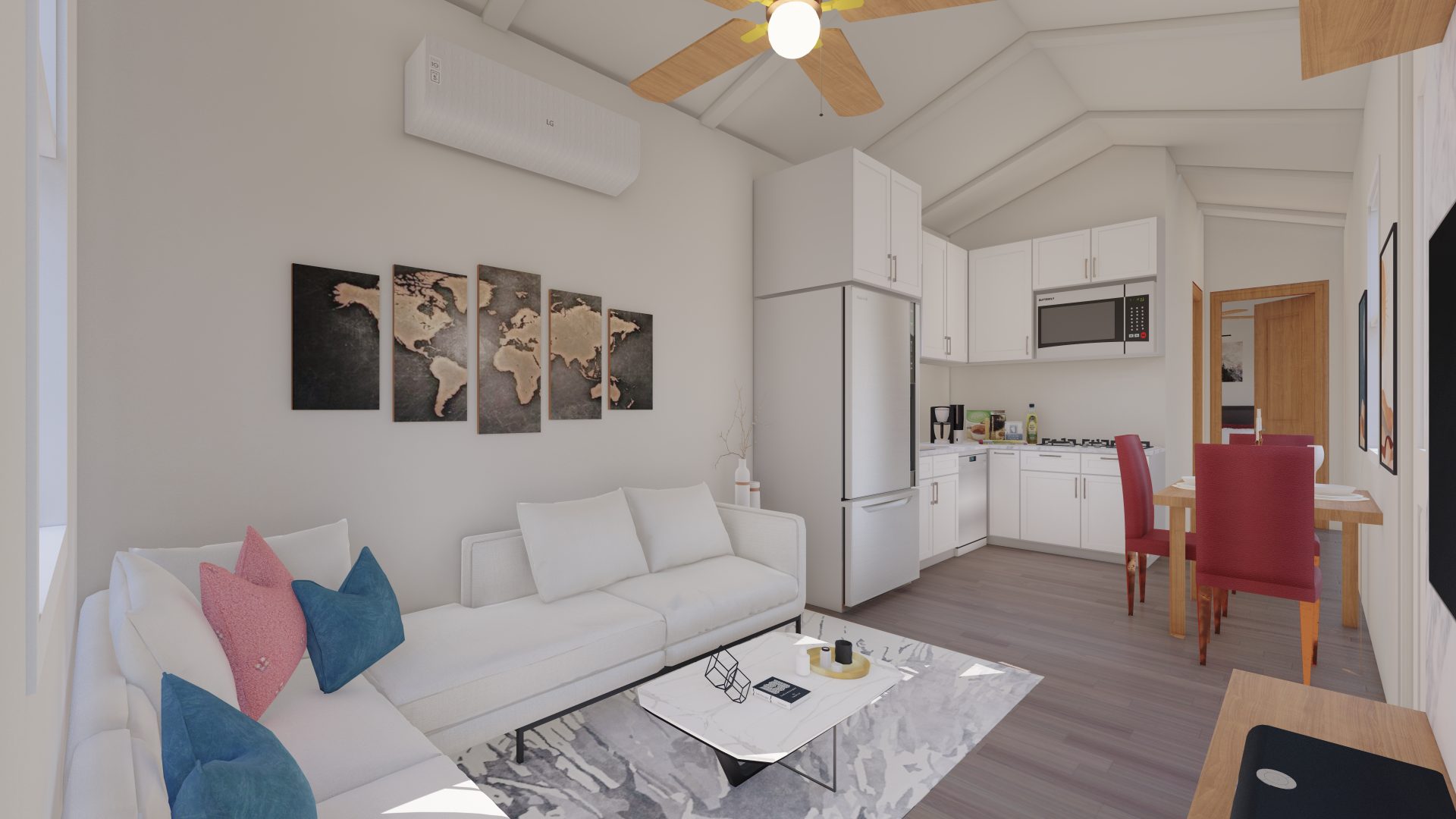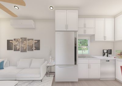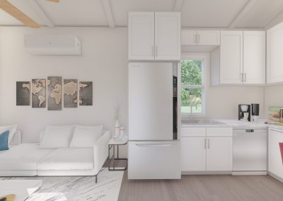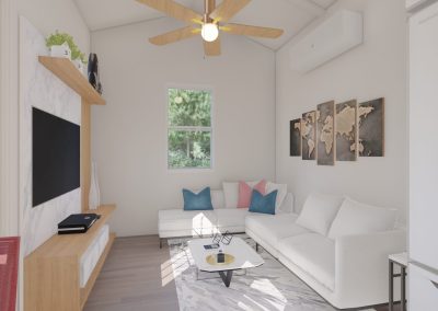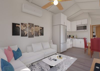 Introducing a cutting-edge 400-square-foot Accessory Dwelling Unit (ADU) designed to surpass HUD and FHA loan requirements. This innovative living space seamlessly integrates energy-efficient technologies, sustainable materials, and universal design principles. With meticulous attention to detail, the ADU maximizes functionality and comfort while meeting all regulatory standards. Its compact footprint emphasizes modern living without compromising on quality. This dwelling is not just a home; it’s a testament to forward-thinking design, ensuring accessibility, efficiency, and compliance with the latest housing financing criteria. Our Gable roof design gives 12′ high cathedral ceilings that provide a robust, open air feeling!