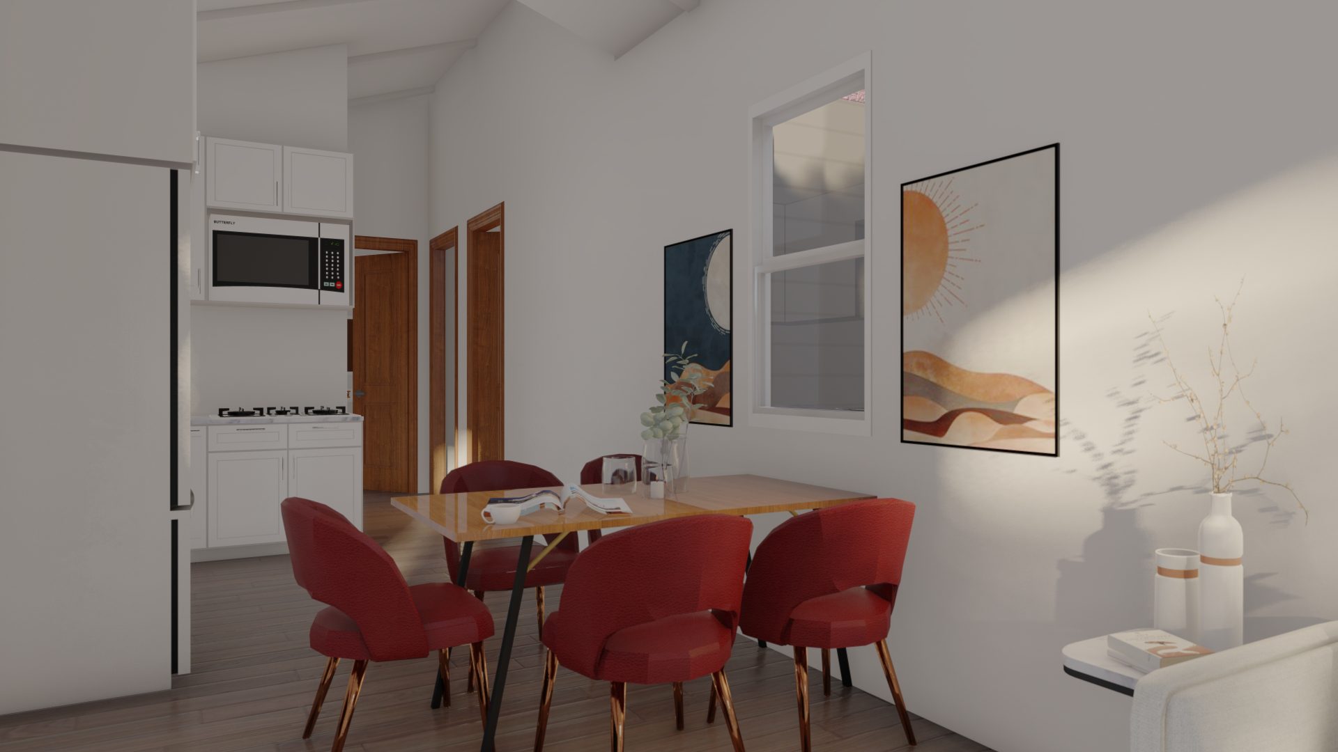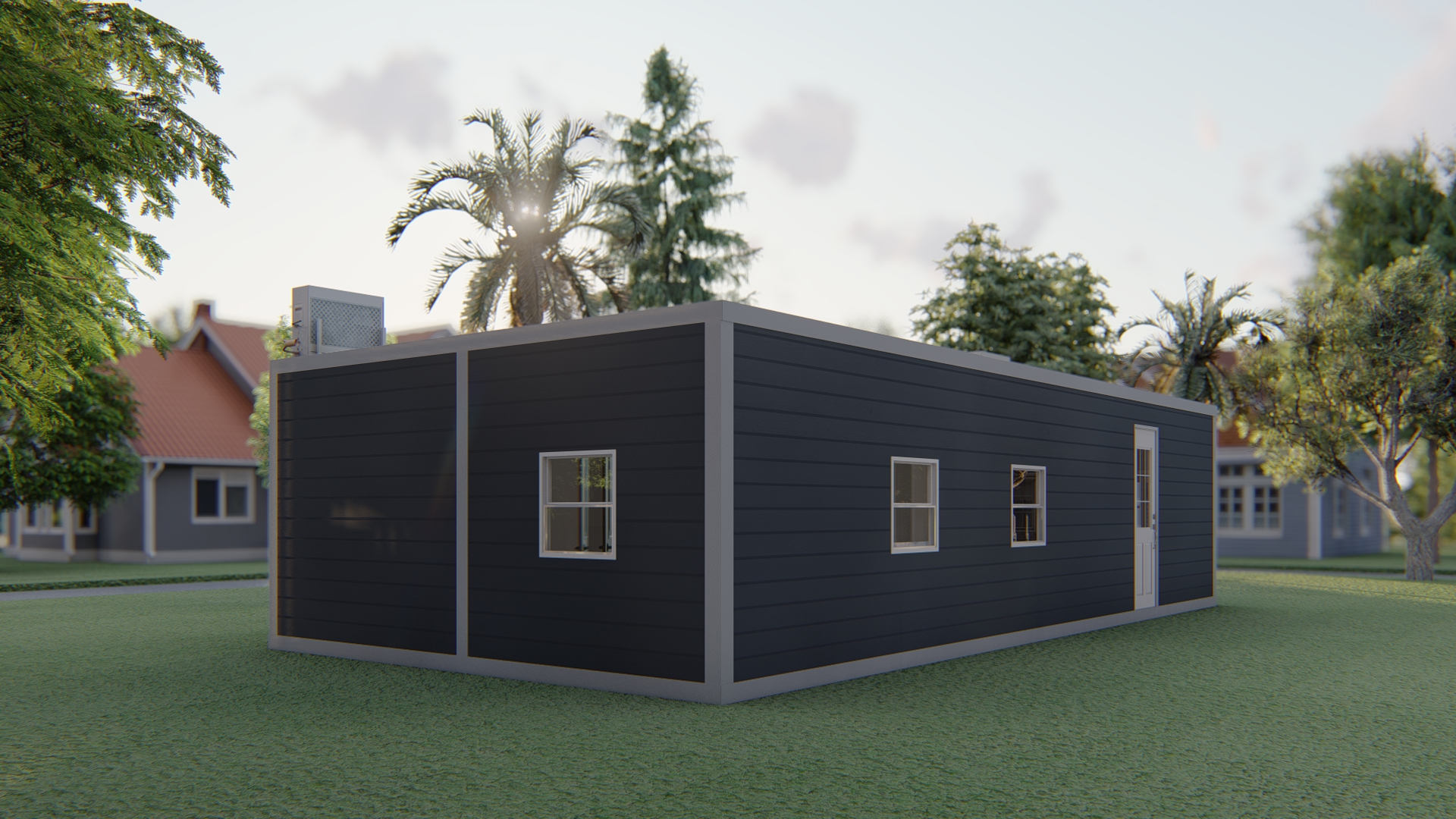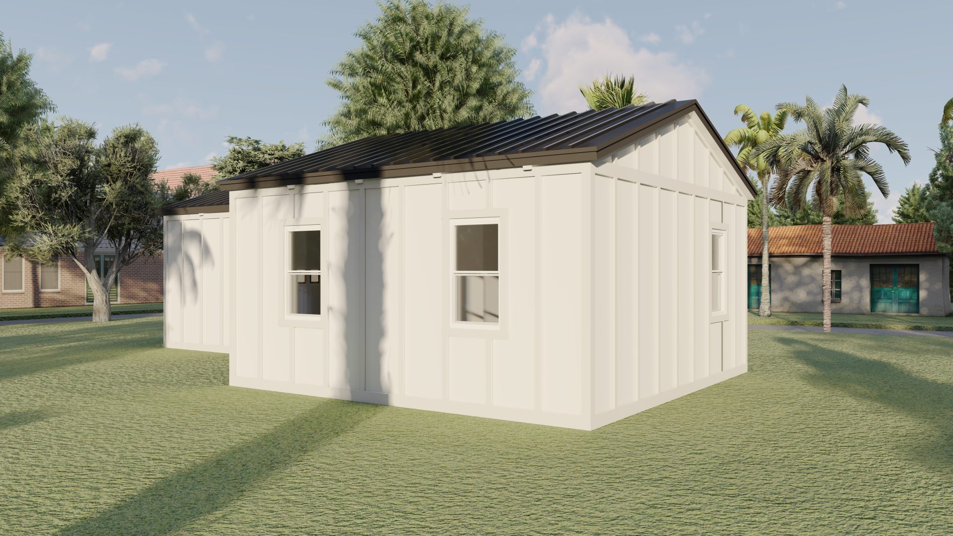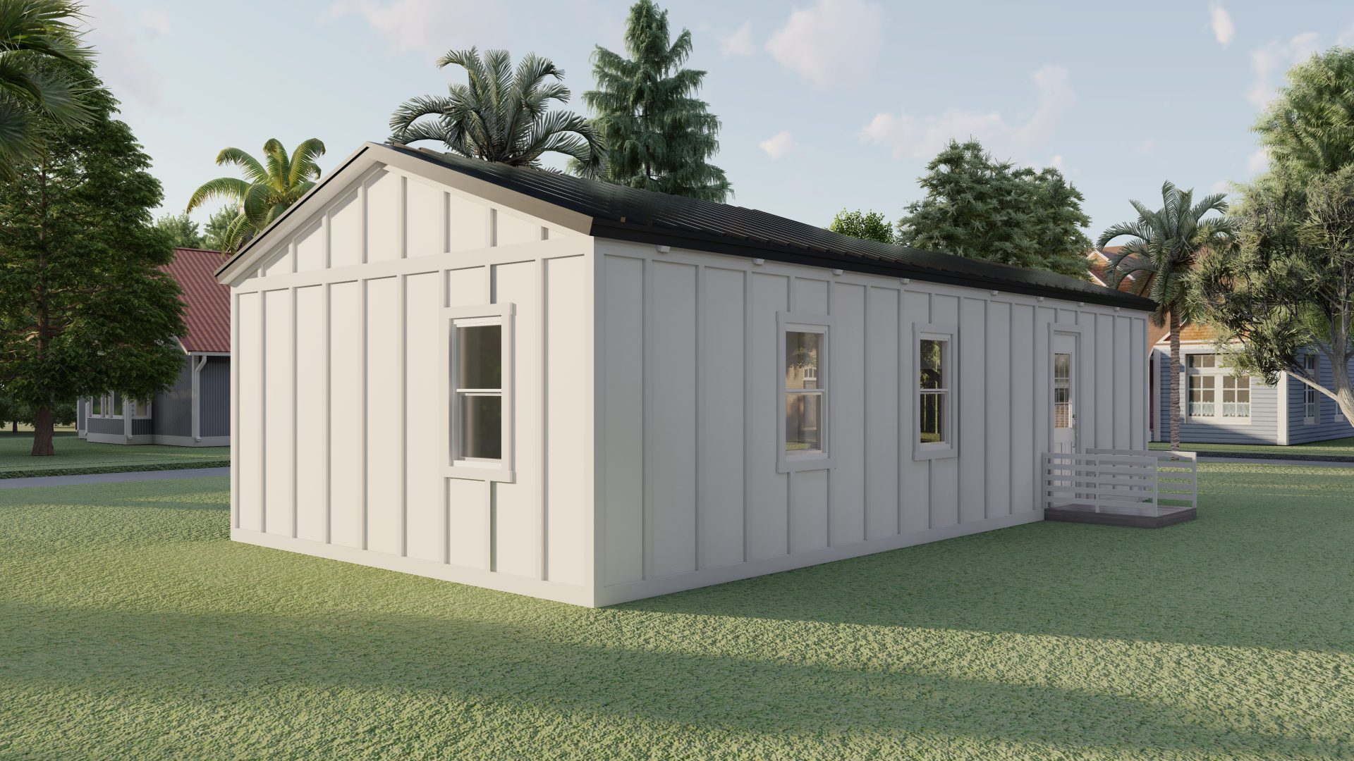 Discover unmatched comfort in our 600 sq ft, two-bedroom, one-bath home by Adaptive Construction Systems. Manufactured using A500 carbon steel framing, MGO board, and closed-cell foam insulation—double the norm—this home ensures exceptional insulation and resilience. Fire, wind, and mold-resistant, it qualifies for FHA and HUD traditional mortgages, surpassing IBC codes. Crafted with skyscraper-like durability, this home is built to last for generations. Seize the opportunity to own an innovative, long-lasting, and affordable residence that redefines the standards of comfort and sustainability. The unique Gable roof design gives interior cathedral ceilings that are 12′ tall.