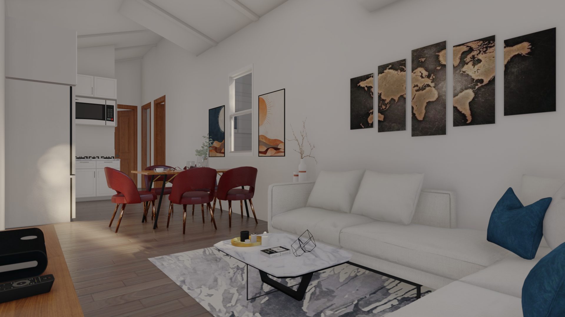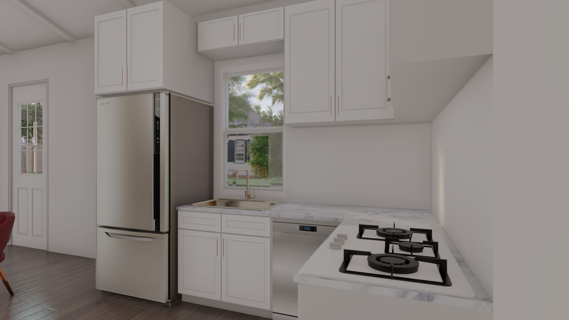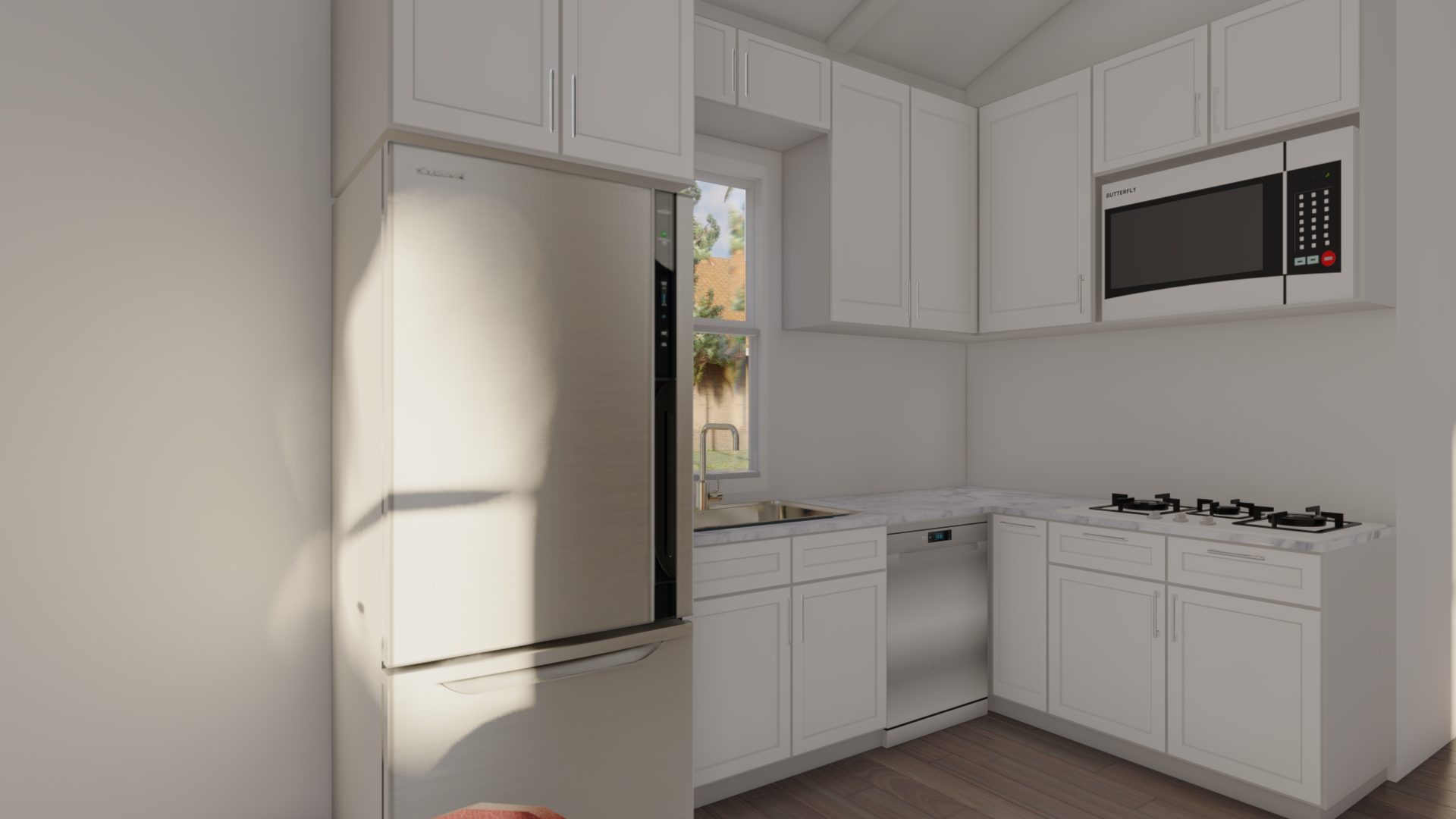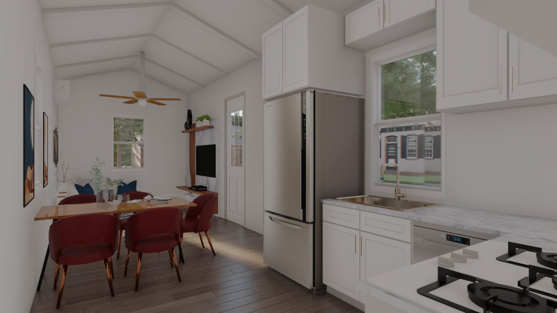 Discover unmatched comfort in our 600 sq ft, two-bedroom, one-bath home by Adaptive Construction Systems. Manufactured using A500 carbon steel framing, MGO board, and closed-cell foam insulation—double the norm—this home ensures exceptional insulation and resilience. Fire, wind, and mold-resistant, it qualifies for FHA and HUD traditional mortgages, surpassing IBC codes. Crafted with skyscraper-like durability, this home is built to last for generations. Seize the opportunity to own an innovative, long-lasting, and affordable residence that redefines the standards of comfort and sustainability. The unique Gable roof design gives interior cathedral ceilings that are 12′ tall.